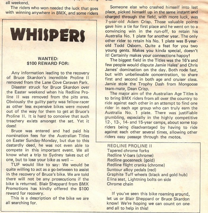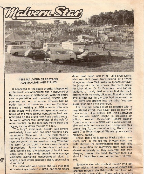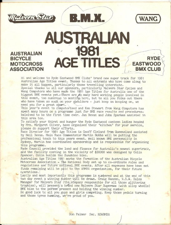 The Ryde Eastwood BMX club built a brand new track, designed by Colin Spencer (of Sunshine bikes). The land was donated by the local council and the track was built for around $3000.