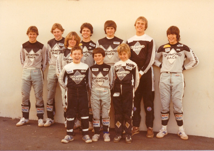 Diamond Back was one of the first manufacturers on the Australian BMX scene. In 1979, Diamond Back was picked up by Sydney based company Technicomps. The Technicomps company was actually started to exclusivley import and distribute Diamond Back BMX Bikes. Soon after, a Factory Team was established with hot shot Queenslander Paul Addams the first Factory Team rider. Australian Diamond Back Team Manager, Eric Munns had a keen eye for talent, and soon signed up more riders from around the country. Sydney sider Jim O'Neill, quickly established himself on the scene, winning the 16 boys National title in 1982, before Eric signed 7 year old Cameron Mitchell who went on to win 4 World Titles and numerous State and National Titles.